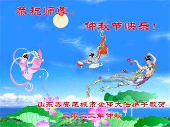谢谢师父! 法轮大法好,真善忍好。 山东省聊城市三个学法组的全体大法弟子恭祝师父中秋节快乐!跪拜师父合十