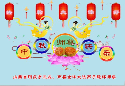 山西省阳泉市三区、两县全体大法弟子恭祝师尊中秋节快乐!