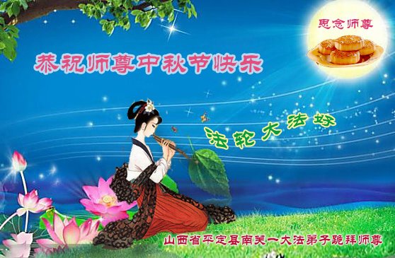 弟子和家人感谢师尊的慈悲苦度!值此中秋佳节之际,向伟大师尊送上最真心的问候,祝师尊中秋佳节快乐! 山西省阳泉市平定县一大法弟子恭祝慈悲伟大的师尊中秋节快乐!