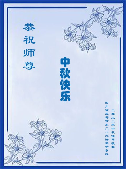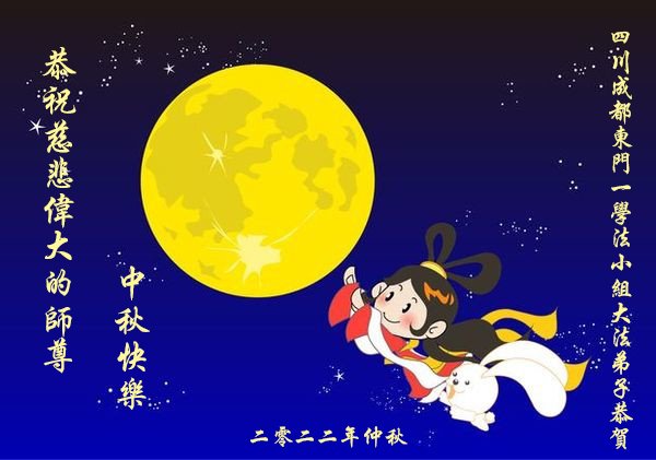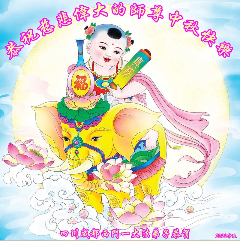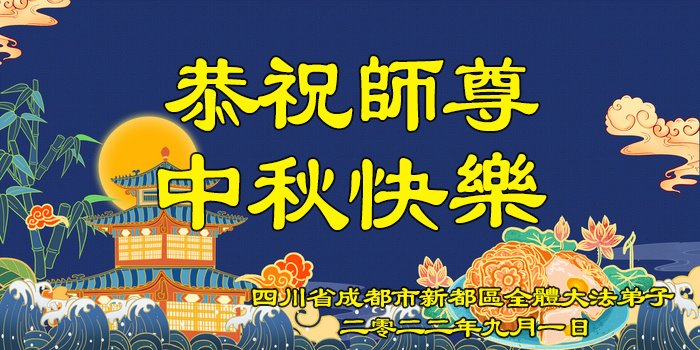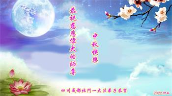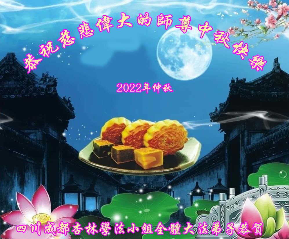 【明慧网二零二二年九月八日】 四川成都一老年大法弟子恭祝师尊中秋快乐!