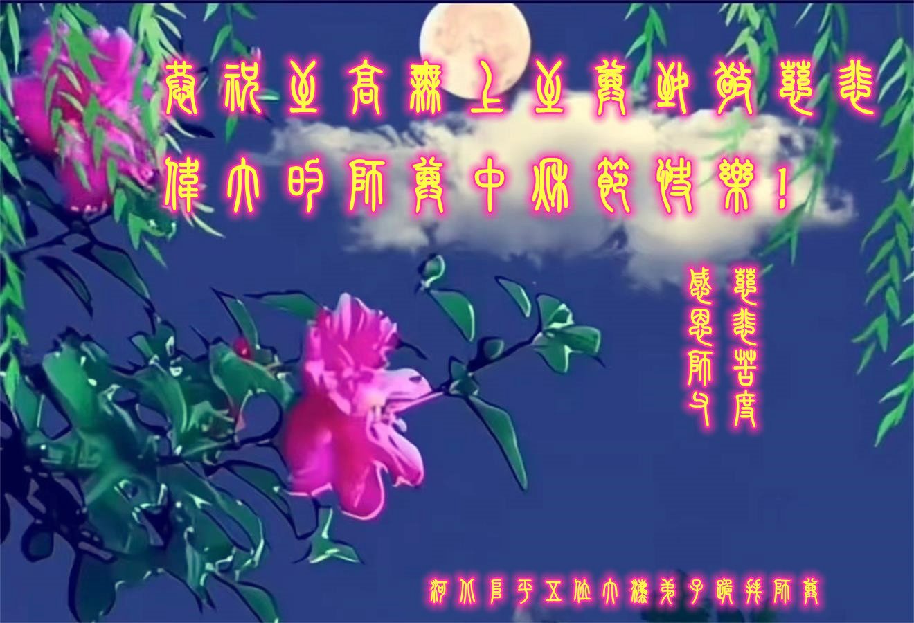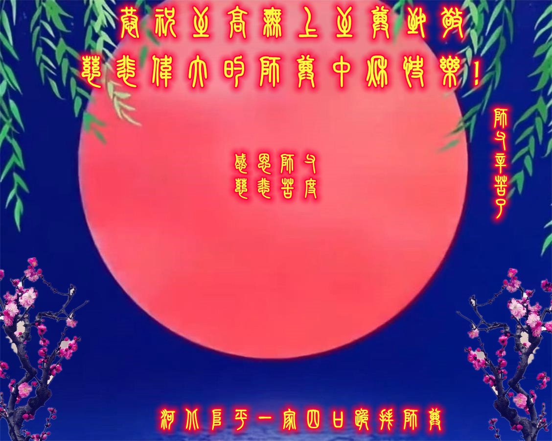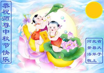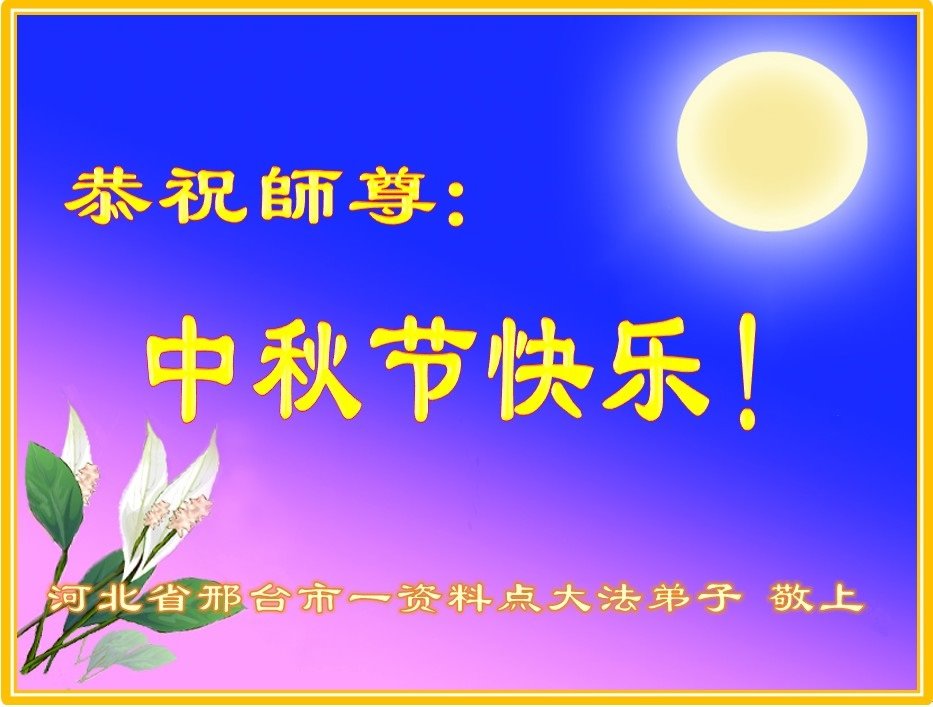 师尊: 中秋快乐!弟子谨记师尊教诲,放下一切执着,精進实修。 河北省邢台市一大法弟子 河北省衡水市故城县大法弟子恭祝师尊中秋快乐!