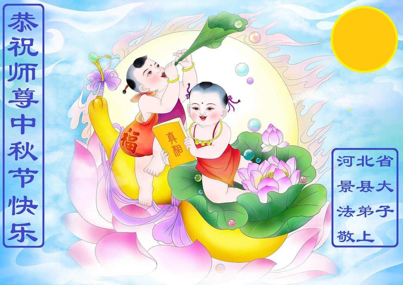 河北沧州一学法小组大法弟子恭祝师尊中秋快乐!