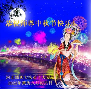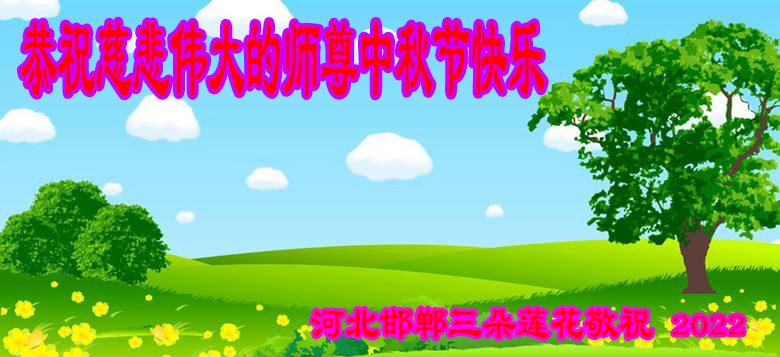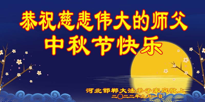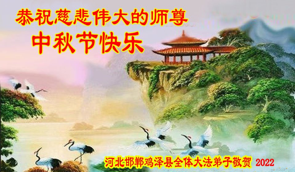 【明慧网二零二二年九月八日】 河北邯郸鸡泽县全体大法弟子敬祝慈悲伟大的师尊中秋节快乐!