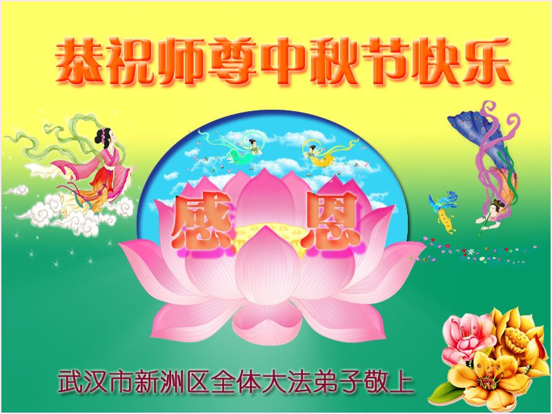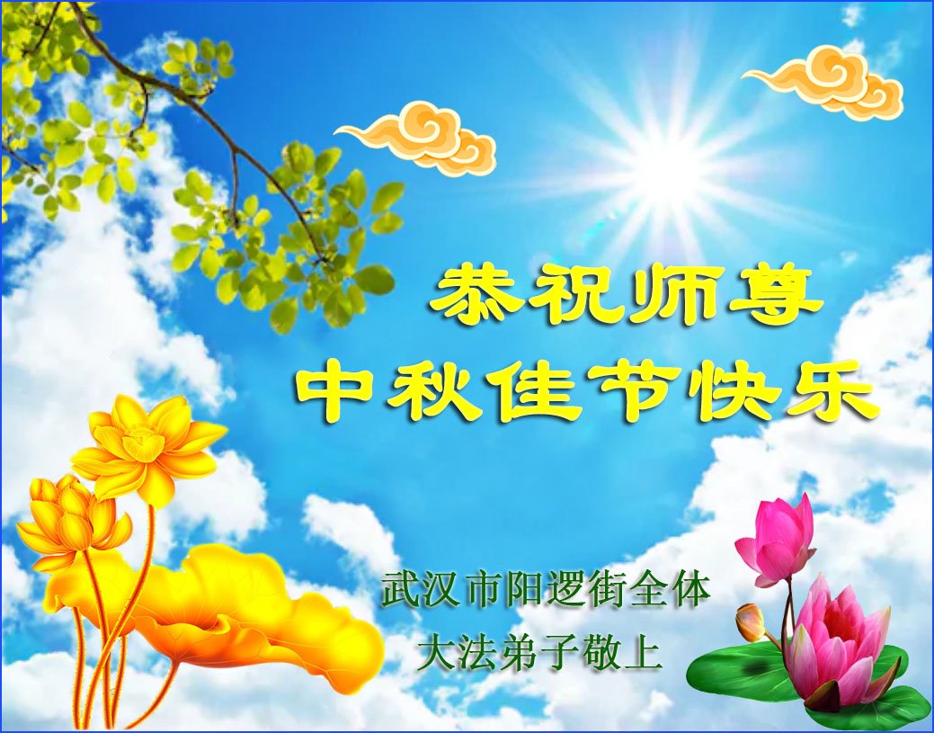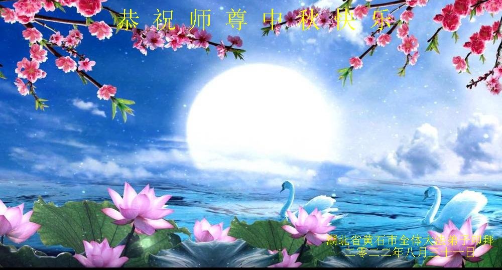 湖北省黄石市全体大法弟子恭祝师尊中秋节快乐! 湖北省武汉市阳逻街一大法弟子恭祝慈悲伟大的师尊中秋节快乐!