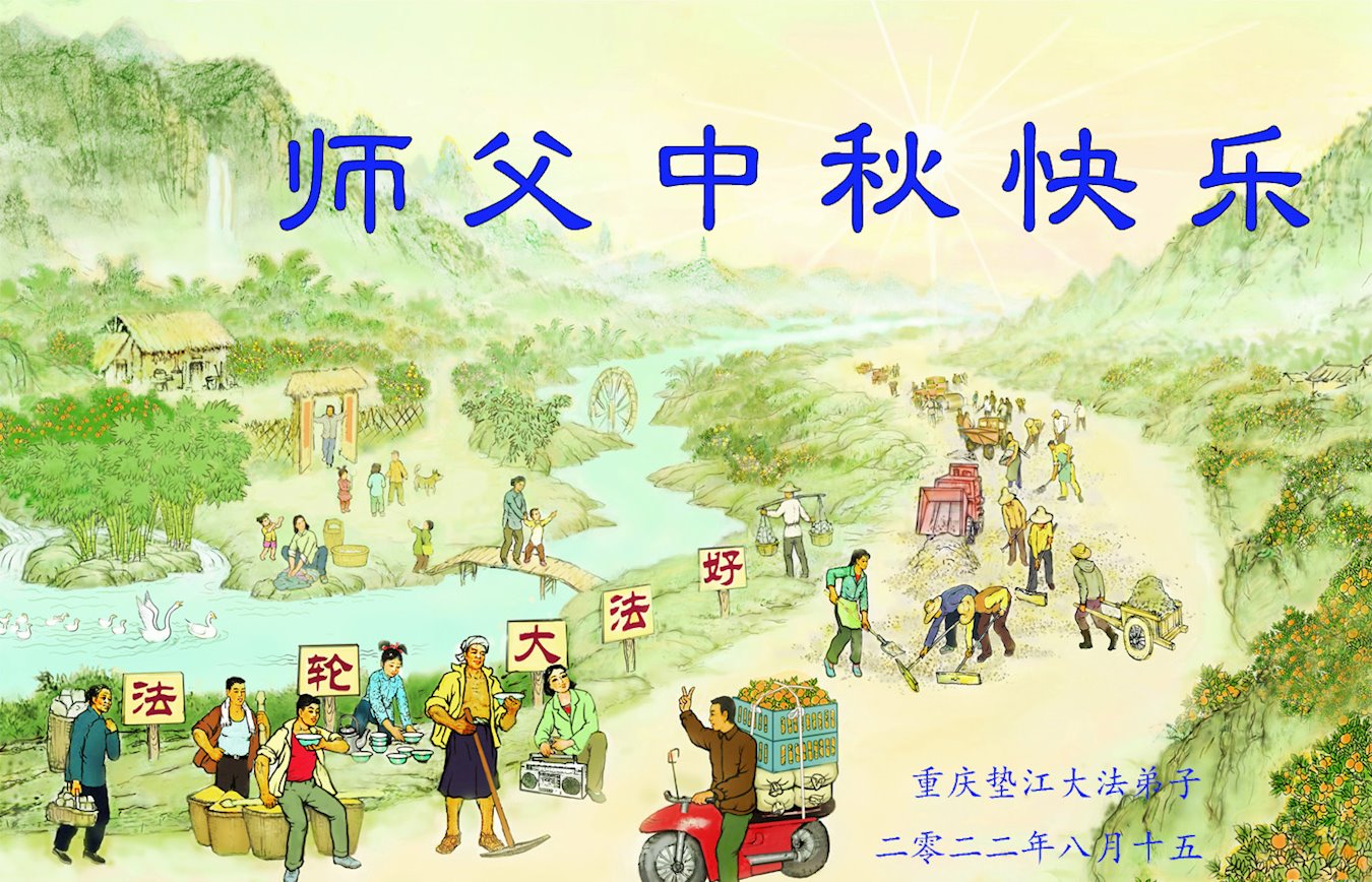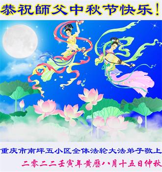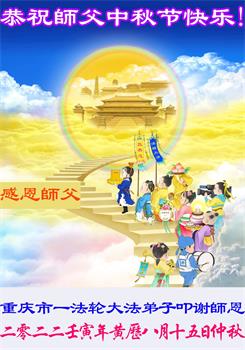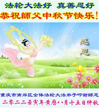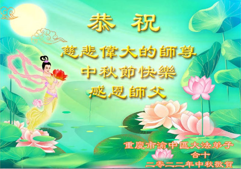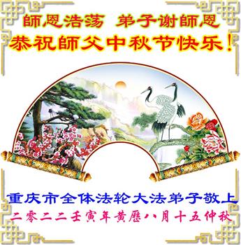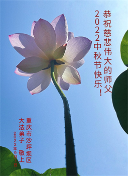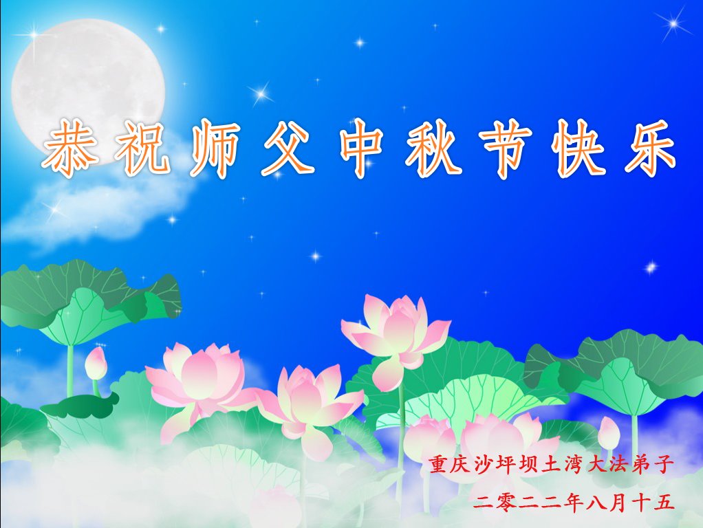 【明慧网二零二二年九月八日】 重庆市沙坪坝区大法弟子恭祝慈悲伟大的师父二零二二年中秋节快乐!