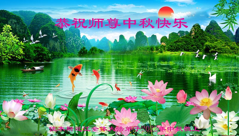 黑龙江省佳木斯近江全体大法弟子恭祝师尊中秋快乐!