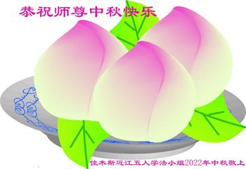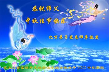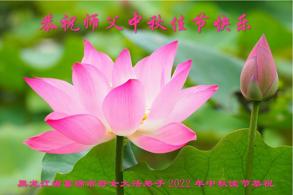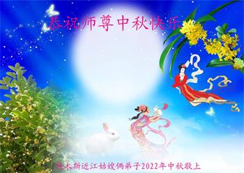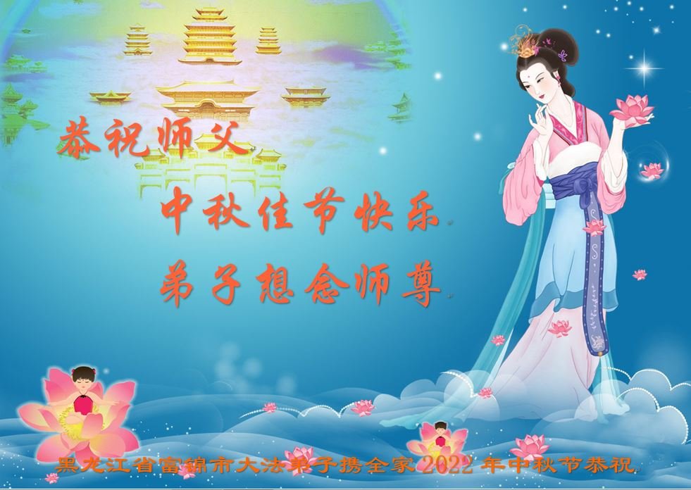 【明慧网二零二二年九月八日】 黑龙江省佳木斯市富锦市夫妻大法弟子携全家恭祝师父中秋快乐!