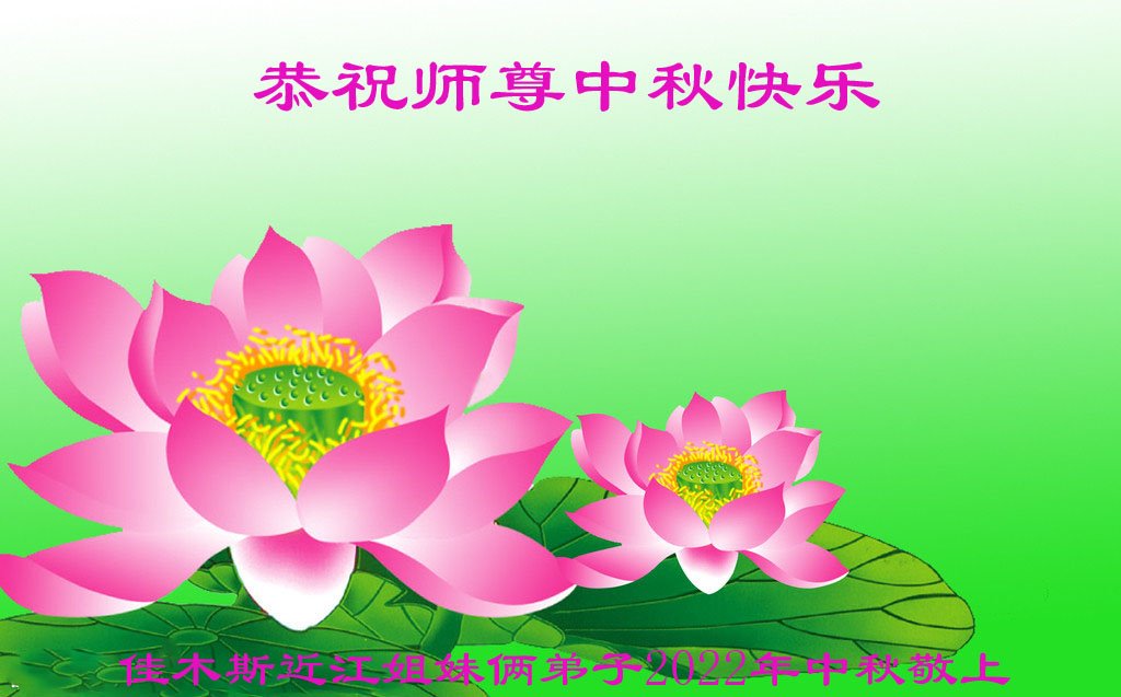 佳节之际恭祝师尊快乐!感恩救人路上师尊时时保护,弟子要努力精進实修,助师正法多救人,完成史前大愿,圆满随师还。 黑龙江省佳木斯市近江两人学法小组大法弟子恭祝师尊中秋节快乐!
