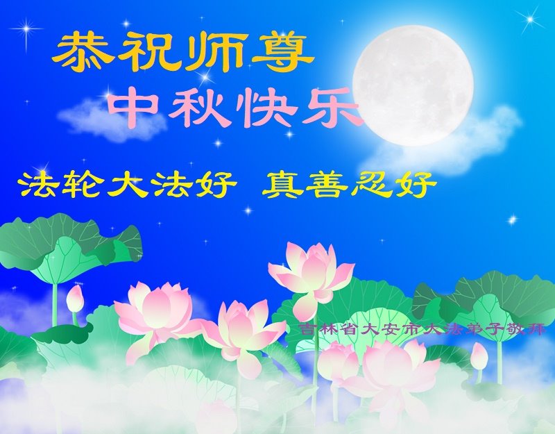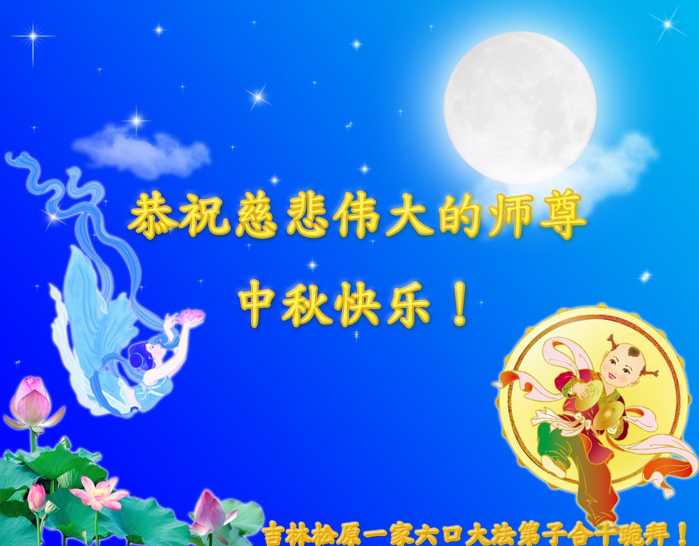 恭祝师尊中秋快乐! 法轮大法好,真善忍好。 吉林省大安市大法弟子敬拜 吉林省松原市一家六口大法弟子恭祝师尊中秋快乐!