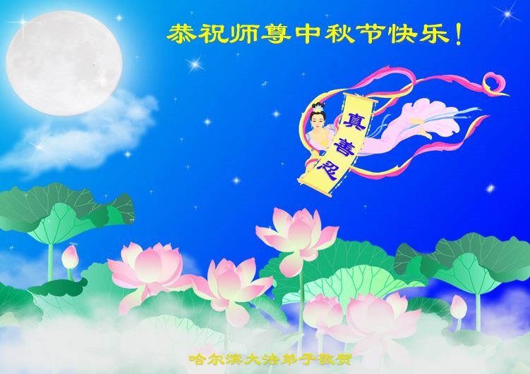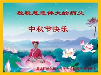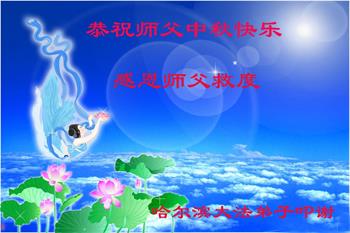 谢谢师父慈悲苦度!弟子一定精進多去人心,多救人希望众生平安,望师父早日回归大陆。 黑龙江省哈尔滨大法弟子恭祝师尊中秋节快乐!