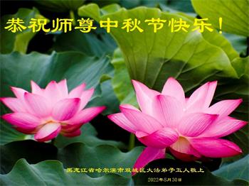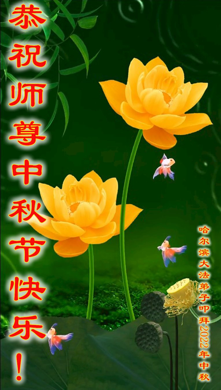 【明慧网二零二二年九月八日】 黑龙江省哈尔滨大法弟子恭祝慈悲伟大的师父中秋快乐!