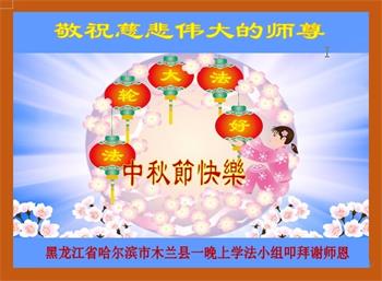 哈尔滨市木兰县一学法小组大法弟子叩拜敬上 黑龙江省哈尔滨市阿城市区大法弟子恭祝师尊中秋节快乐!