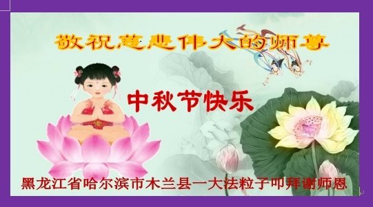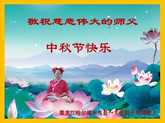 黑龙江省哈尔滨市木兰县一大法粒子叩拜敬上 黑龙江省哈尔滨市双城区三家五位大法弟子恭祝伟大慈悲的师父中秋佳节快乐!