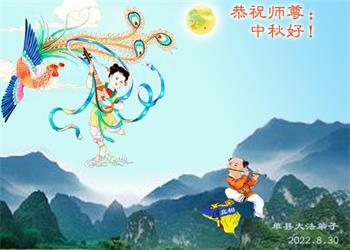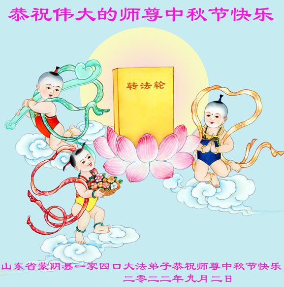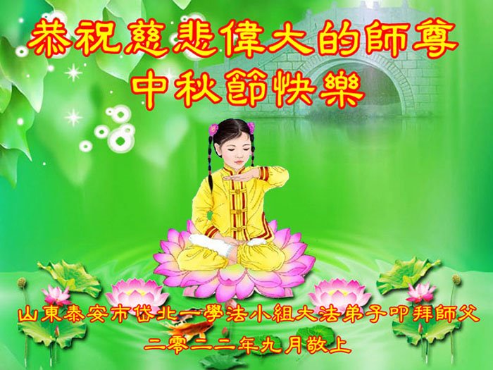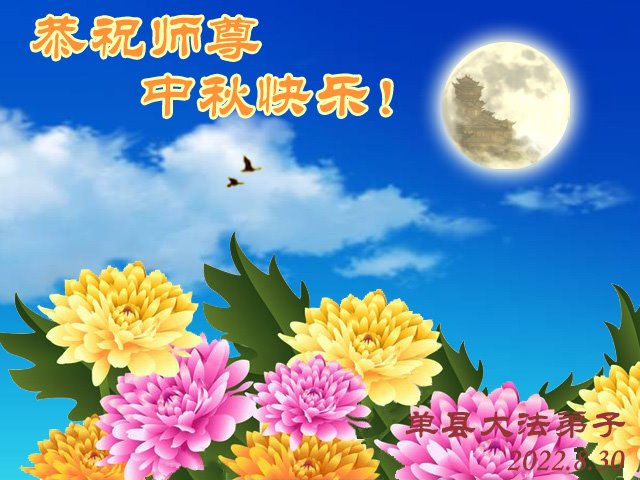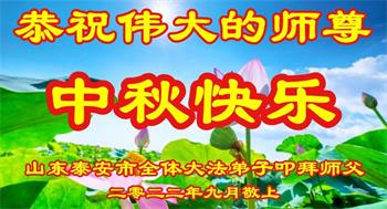 【明慧网二零二二年九月八日】 山东泰安市岱北一学法小组大法弟子恭祝慈悲伟大的师尊中秋节快乐!