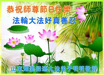 师尊您好。大法洪传三十周年,无量众生沐浴佛法洪恩。师父教导的弟子,按真善忍的标准为人处世,让众生发自内心的赞叹法轮大法好,让众生明白真相,为自己的生命选择了一个美好的未来。 谢谢慈悲伟大的师父!弟子恭祝师父中秋节快乐! 山东烟台招远三位大法弟子恭祝慈悲伟大师尊中秋节快乐!