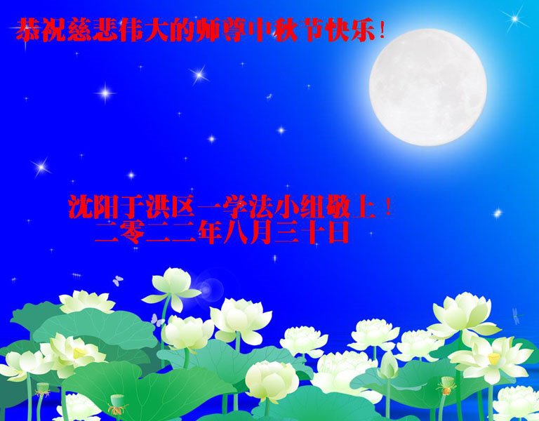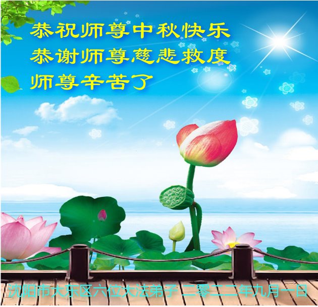 【明慧网二零二二年九月八日】 辽宁省沈阳市大东区六位大法弟子恭祝师尊中秋快乐!
