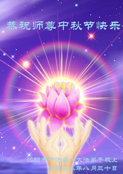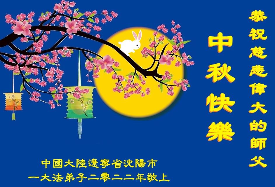 又是一年中秋节,弟子想念恩师。在这有限的时间里,弟子们加倍努力做好三件事,不辜负师尊的慈悲救度。 辽宁省沈阳一大法弟子及家属恭祝师父中秋快乐!