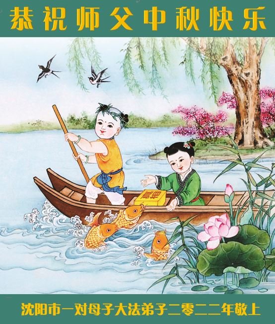 辽宁省沈阳市一对母子大法弟子恭祝师父中秋快乐!