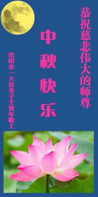 逝水流年去无痕 又见中秋月一轮 隔洋兴叹穿望眼 弟子日夜盼师尊 遥祝师尊佳节好 万言难谢救度恩 法正人间随师行 唯有精進、再精進 沈阳市法库县全体大法弟子敬贺 |
