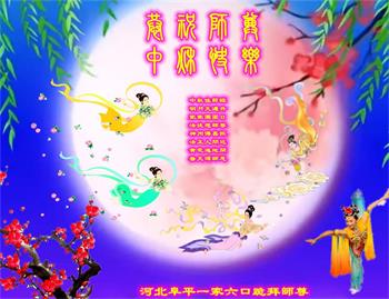 河北衡水一老年大法弟子携全家恭祝师父中秋节快乐!