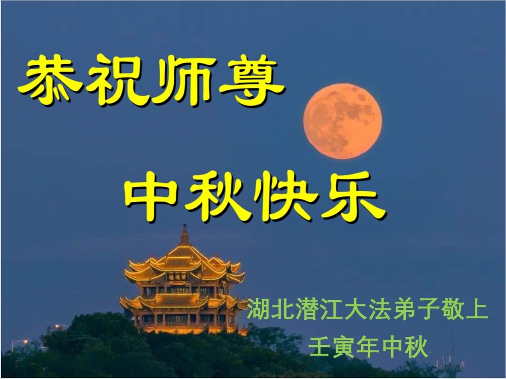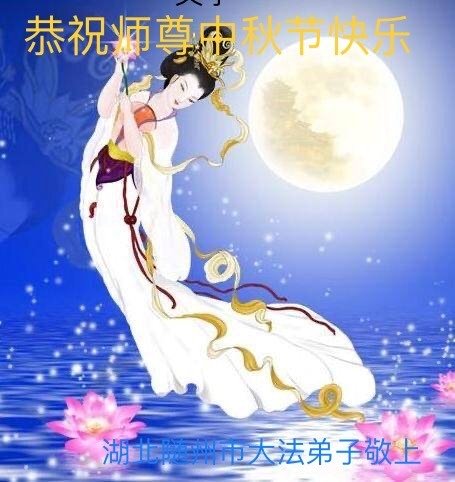 中秋添正念 精進不停步 去执多救人 圆满天庭住 湖北省直辖行政单位潜江市一大法弟子恭祝师尊中秋快乐!