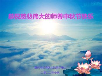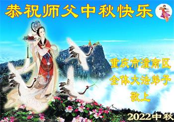 慈悲伟大的师父您好:一年一度的中秋佳节又来临。我们一定做好三件事,在不久的将来我们大陆大法弟子一定会与师父大团圆。谢谢师父。 重庆市大渡口区大法弟子及全家恭祝慈悲伟大的师尊中秋节快乐!