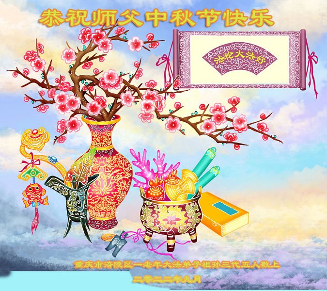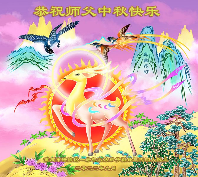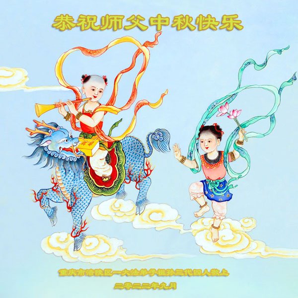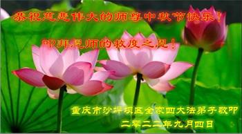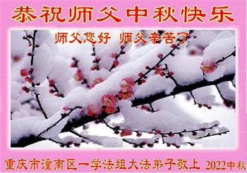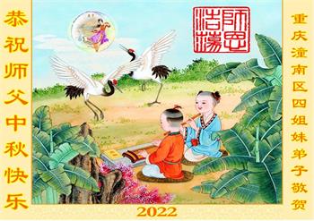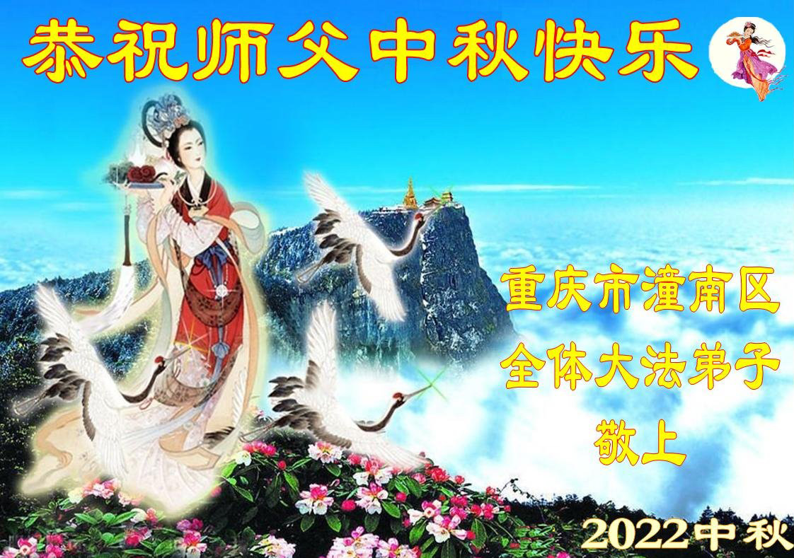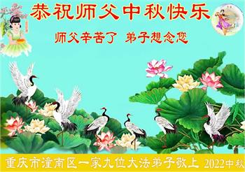 【明慧网二零二二年九月八日】 重庆市九龙坡区一学法小组九名大法弟子恭祝慈悲伟大的师父中秋节快乐!