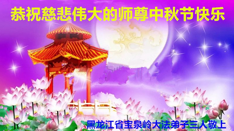 黑龙江省宝泉岭大法弟子三人恭祝慈悲伟大的师尊中秋快乐!