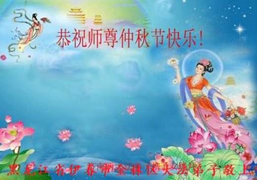 一年一度的中秋节又要到了,弟子们感恩师尊的救度!弟子唯有精進,听师尊的话,去掉人的思维、人的观念,向内找,在自己的一思一念上下功夫,做一个合格的弟子。 黑龙江鹤岗市全体大法弟子恭祝师尊中秋节快乐!