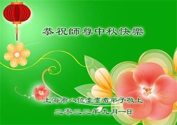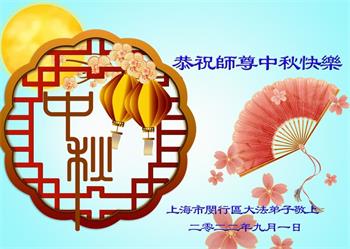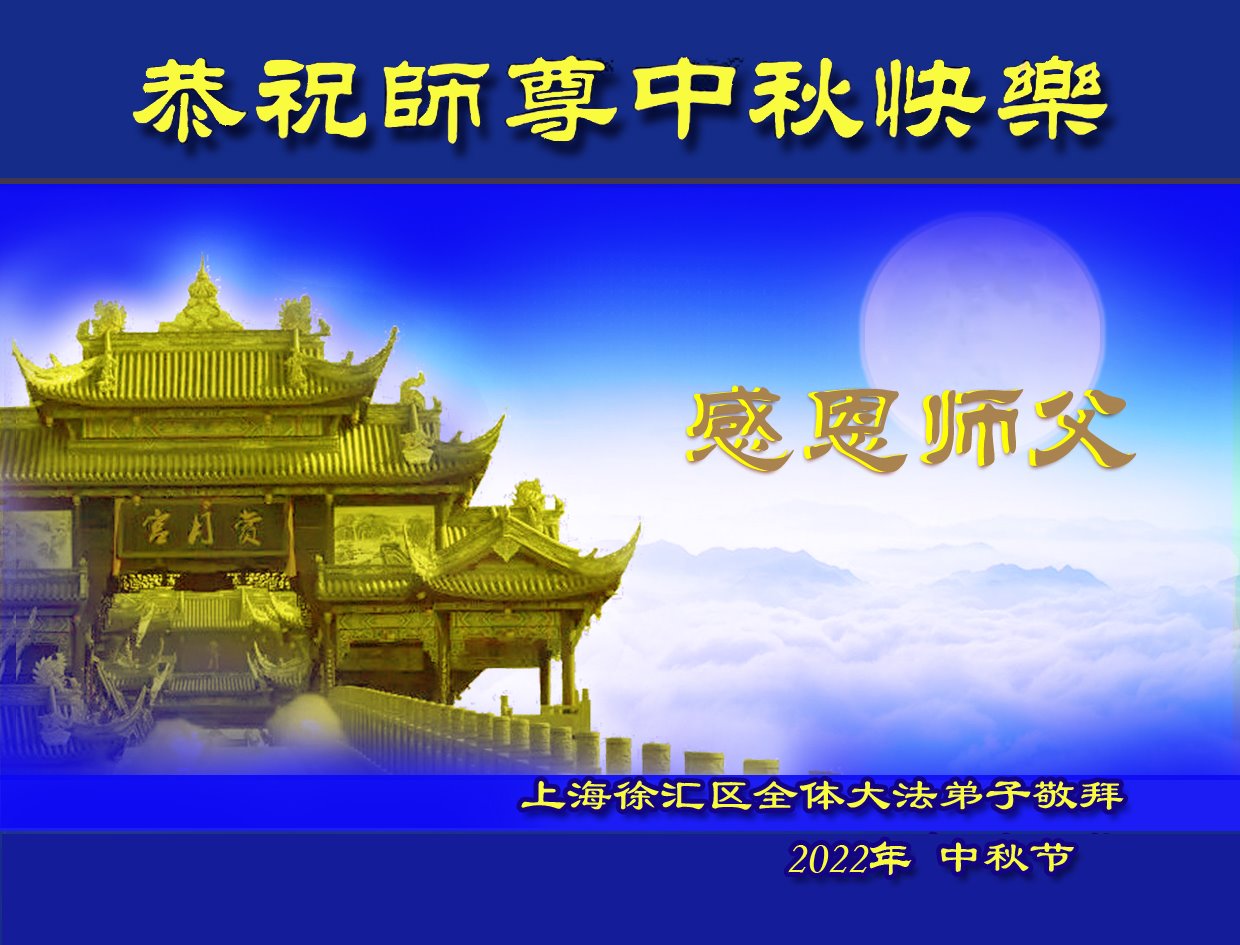 【明慧网二零二二年九月八日】 上海市徐汇区全体大法弟子恭祝师尊中秋节快乐!感恩师尊慈悲苦度!