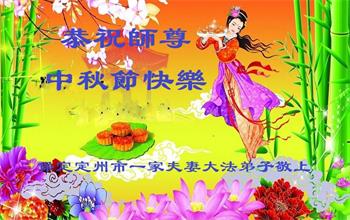 河北保定定州市一家夫妻大法弟子恭祝师尊中秋节快乐!