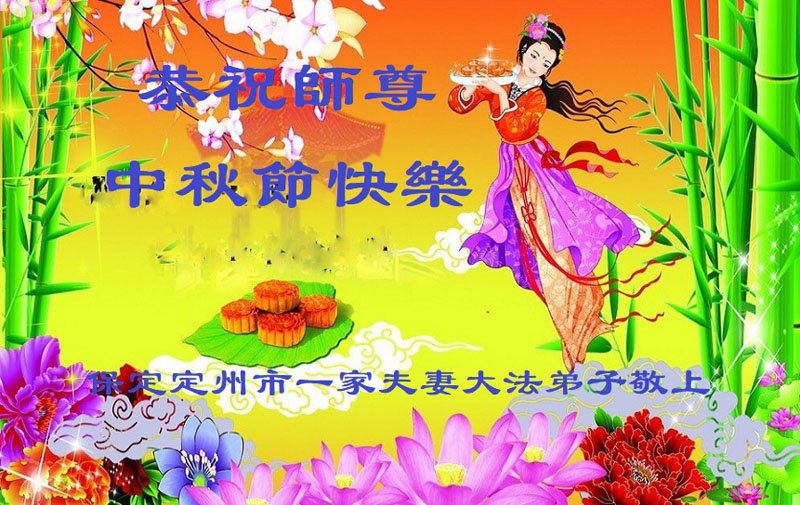 河北省保定一夫妻同修恭祝师尊中秋节快乐!