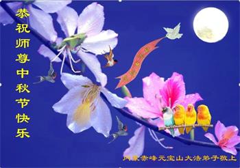 在最后的时间里,做好三件事、精進实修,不辜负师尊的慈悲救度。 谢谢师尊!师尊辛苦了! 内蒙古锡林郭勒盟正镶白旗大法弟子恭祝师尊中秋节快乐!