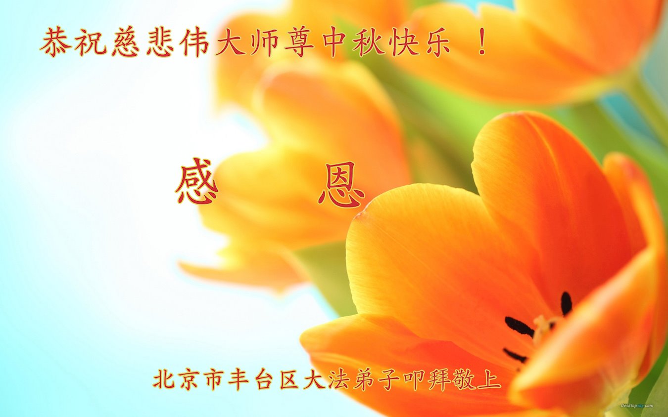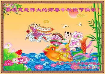 师尊好:您辛苦了! 千言万语表达不尽我们的感恩!只有努力做好。惟愿师尊笑! 北京市海淀区朝阳区大法弟子恭祝慈悲伟大的师尊中秋节快乐!