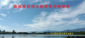 弟子当勇猛精進做好三件事,兑现史前的誓约,圆满随师还!谢谢师尊的慈悲苦度! 北京市海淀区朝阳区大法弟子敬上 北京延庆区大法弟子恭祝慈悲伟大的中秋节快乐!