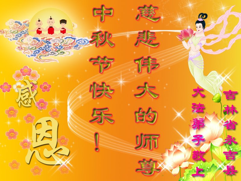 吉林省吉林市永吉县大法弟子恭祝慈悲伟大的师尊中秋节快乐!