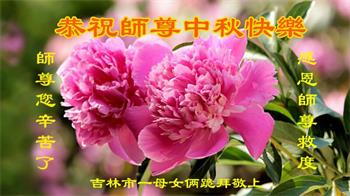 弟子想念师尊,祝师尊中秋快乐!盼师尊早日回家乡。 弟子叩拜师尊!师尊您辛苦了! 吉林省吉林市母女俩大法弟子恭祝师尊中秋节快乐!