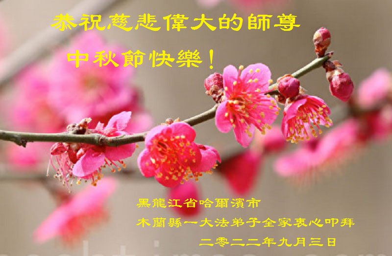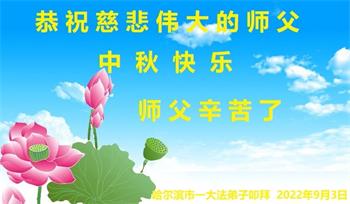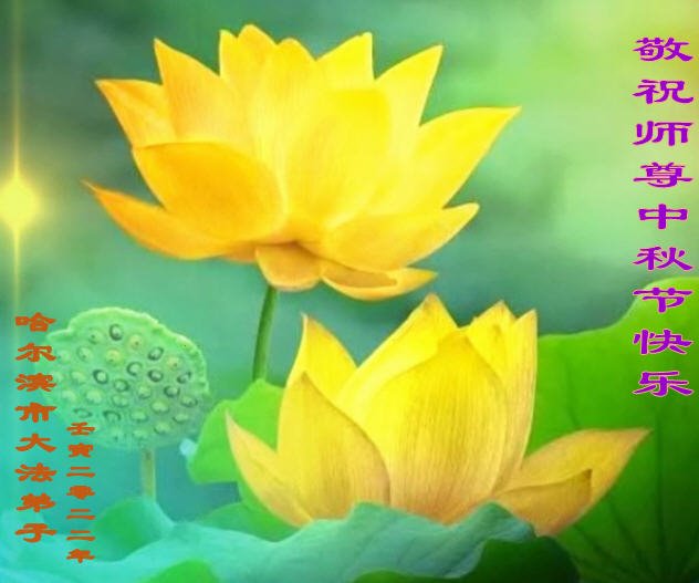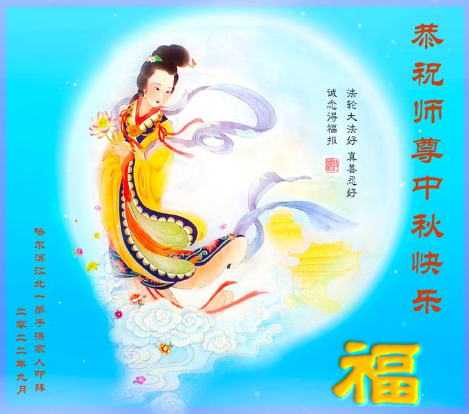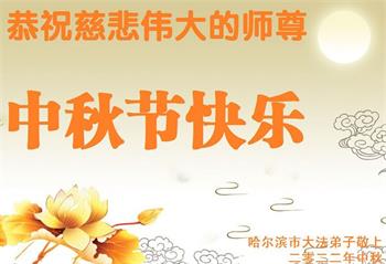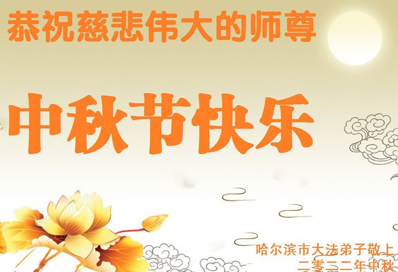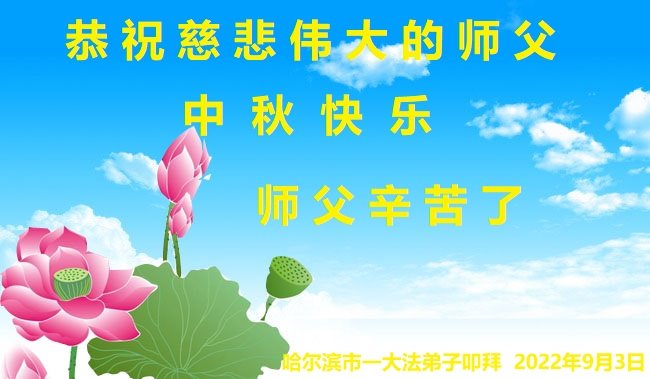 【明慧网二零二二年九月八日】 黑龙江省哈尔滨大法弟子恭祝师尊中秋节快乐!