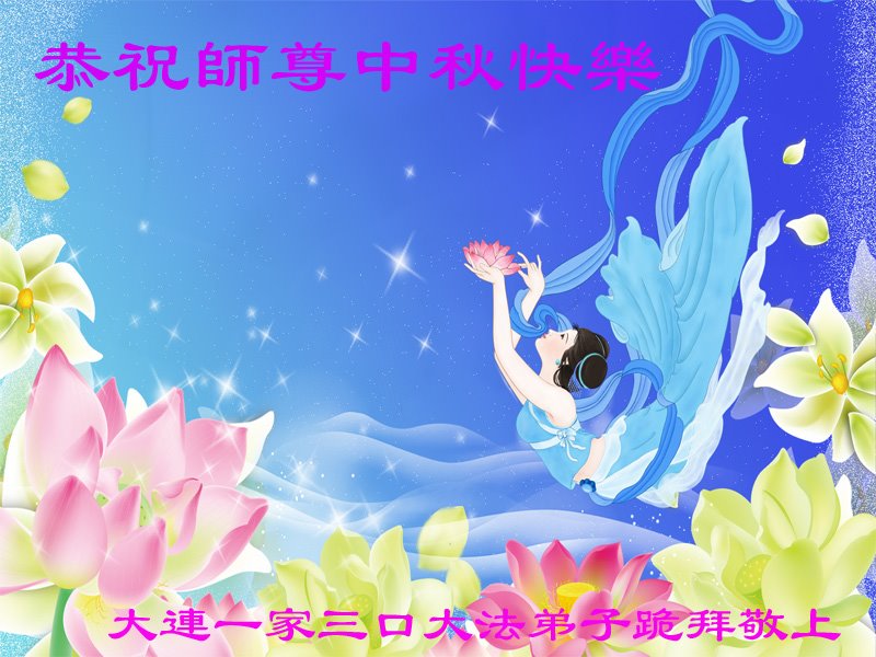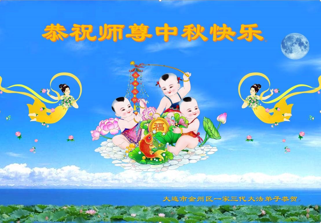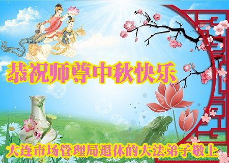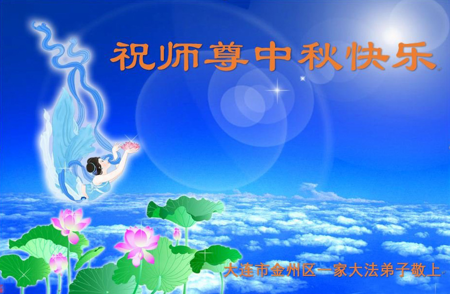 辽宁省大连市场管理局退休大法弟子恭祝慈悲伟大的师尊中秋快乐! 辽宁省大连市金州区大法弟子一家恭祝师尊中秋快乐!