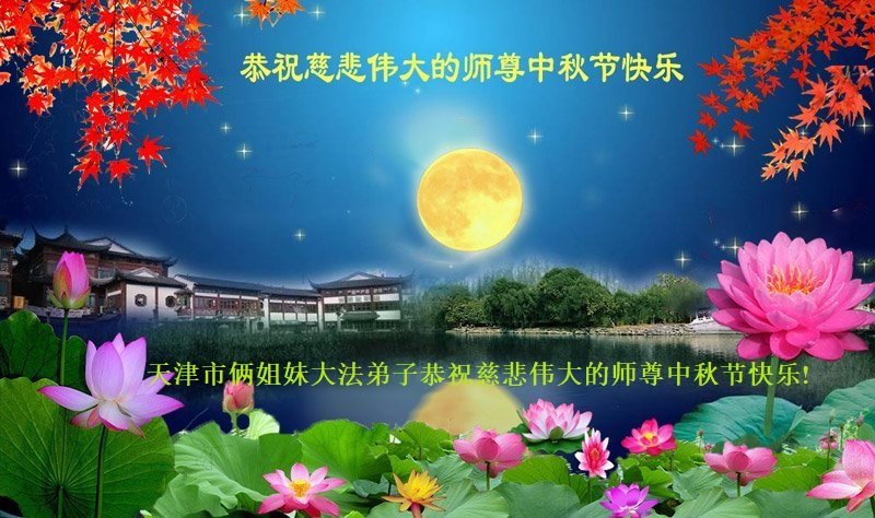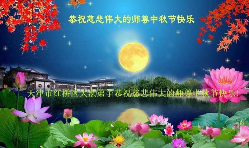 天津大法弟子恭祝慈悲伟大的师尊中秋节快乐!
