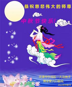 天津市宁河区一大法弟子携全家六口恭祝师尊中秋佳节快乐!