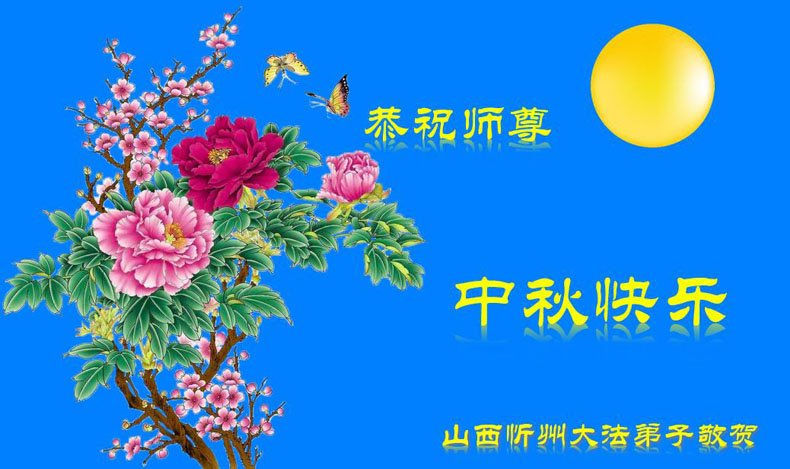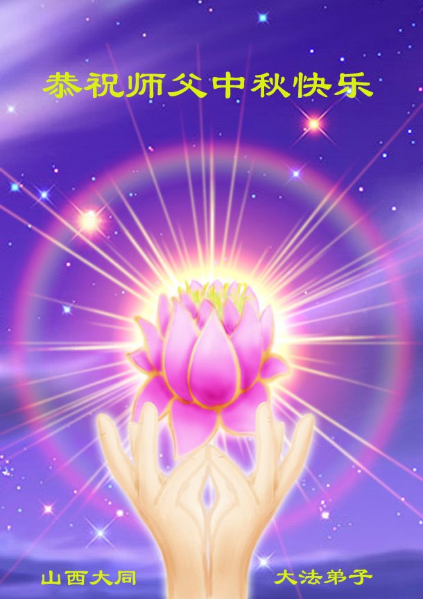 山西省太原市杏花岭区大法弟子及家人恭祝师尊中秋节快乐!在此中秋团圆之际,道一声师尊您辛苦了! 弟子一定多学法,多救人,兑现誓约,让师尊放心。 山西省大同市灵丘县一大法弟子恭祝师父中秋节快乐!弟子叩拜