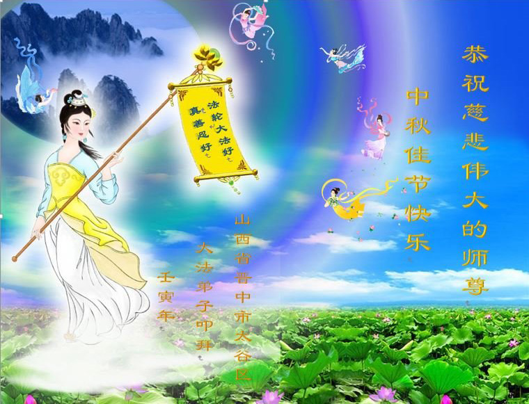师尊您好,中秋佳节在即,愿师尊早日与大陆大法弟子团聚。 山西省太原市杏花岭区大法弟子恭祝师尊中秋节快乐!