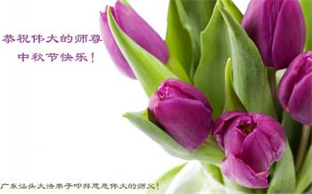 弟子感恩师父慈悲救度,在自己学习、工作、生活环境中改变自己的观念,多为他人着想,不忘时时按真善忍衡量自己的言行,心灵得到净化,身心健康。法轮大法好,真善忍好!谢谢师父。 深圳两位大法弟子敬上 广东汕头大法弟子恭祝师父中秋节快乐!