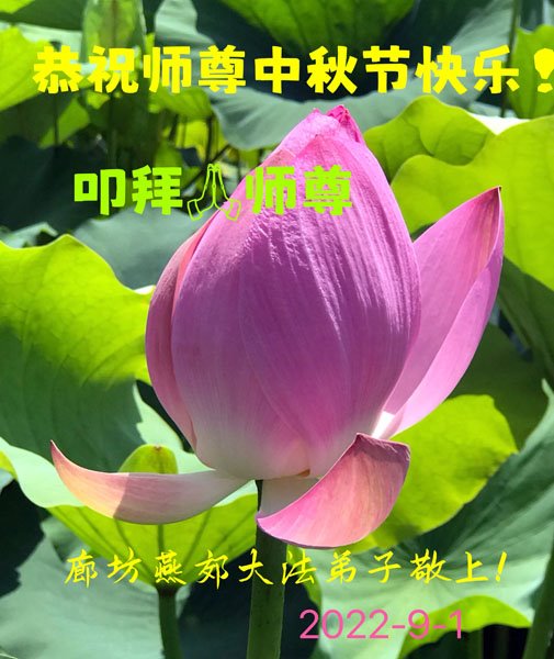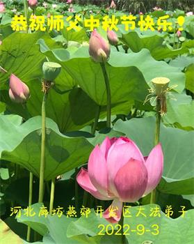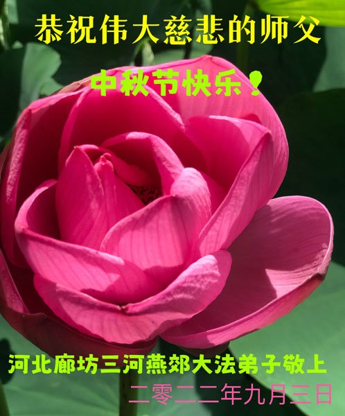 【明慧网二零二二年九月八日】 河北廊坊永清县学法小组大法弟子恭祝慈悲伟大师尊中秋佳节快乐!