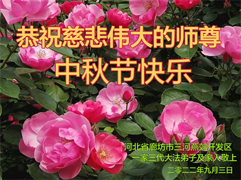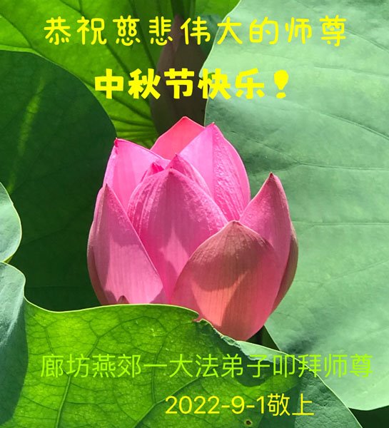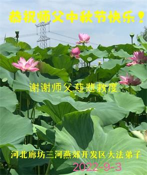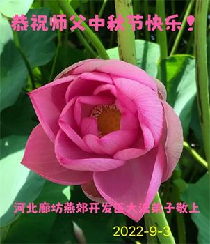 在这最后的正法时刻,弟子一定要努力做好三件事,紧跟师父的正法進程,学好法、修好自己、多救人,不辜负师父慈悲苦度,跟师父回家。 河北廊坊三河燕郊开发区大法弟子恭祝师父中秋节快乐!