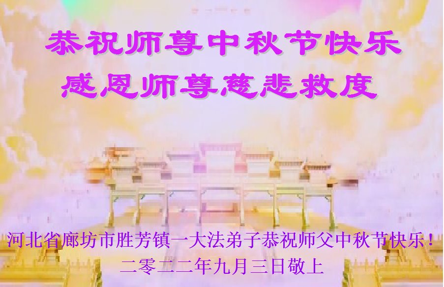 谢谢师父慈悲救度,为弟子操心,弟子要努力做好三件事,跟师父回家。 河北廊坊三河燕郊开发区大法弟子恭祝师父中秋节快乐!