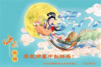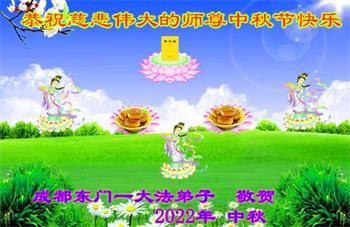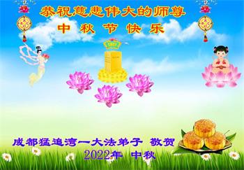 【明慧网二零二二年九月八日】 四川省成都市龙泉驿区一学法小组大法弟子恭祝师尊中秋节快乐!