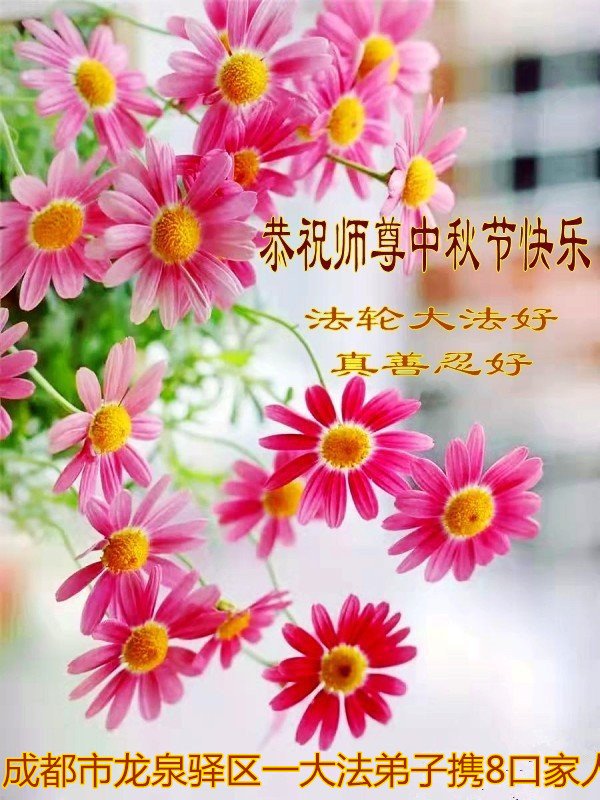 四川省成都市龙泉驿区一大法弟子携八口家人恭祝师尊中秋节快乐!