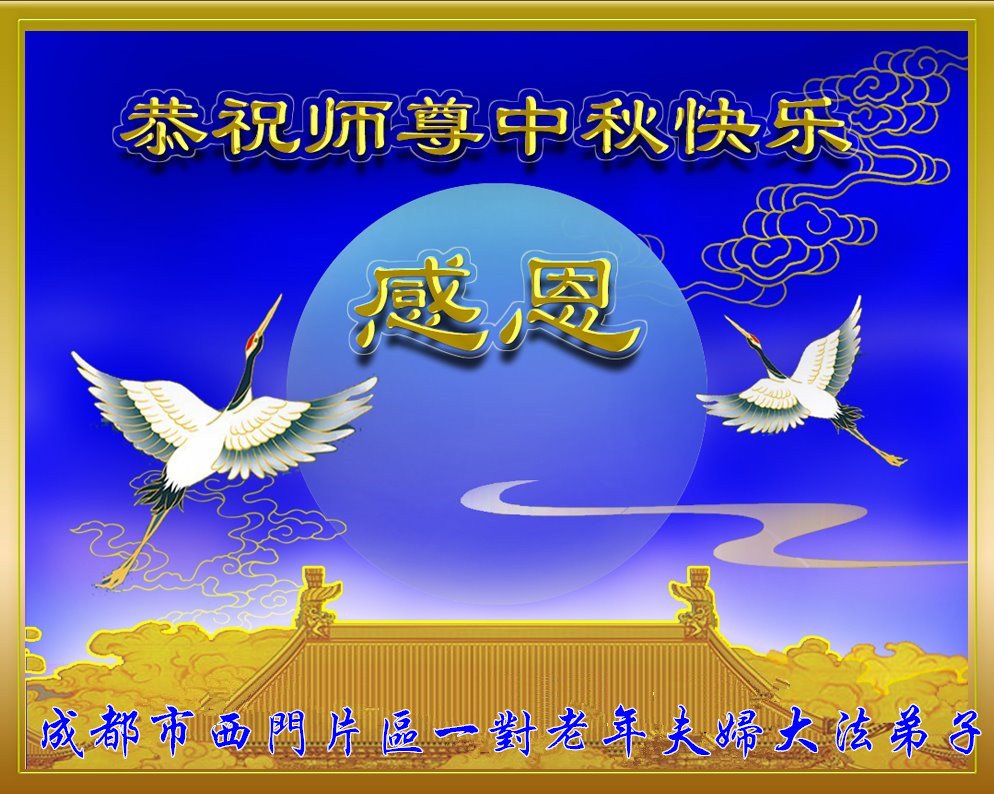 四川省成都一老年大法弟子恭祝师尊中秋快乐!
